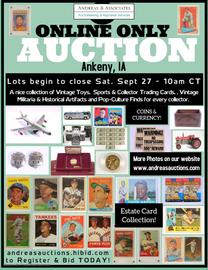 - ONLINE ONLY – Ankeny, IA: Antique & Vintage Collectibles, Pop-Culture & Militaria